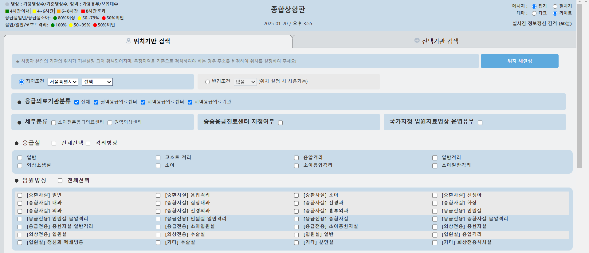 기본적으로 종합상황판 보면 응급의료기관도 분류해서 검색할 수 있고,